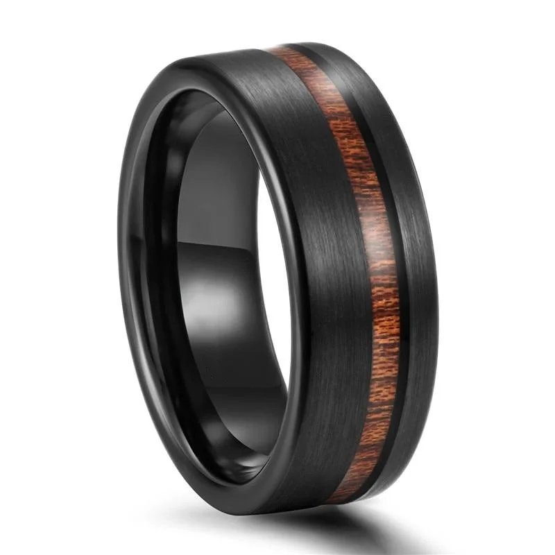 - Titane noir & bois Koa - Force et élégance naturelle - Design sobre & puissant - Symbole de modernité