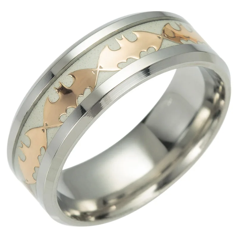 Dark Knight – Bague Batman titane et acier inoxydable lumineuse