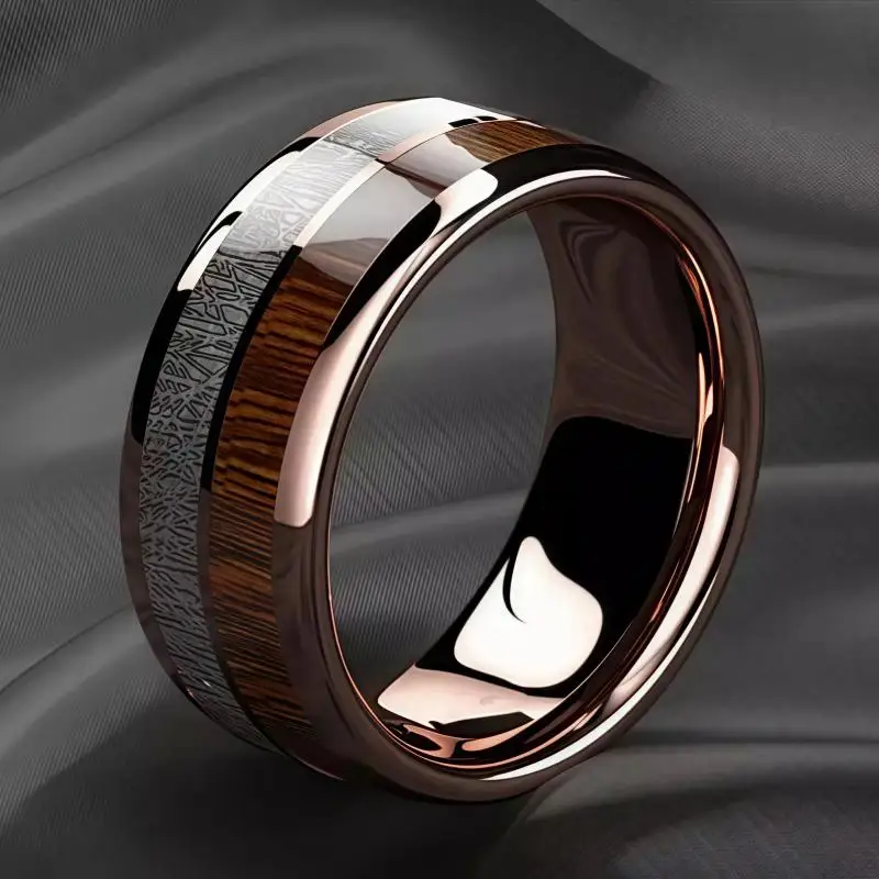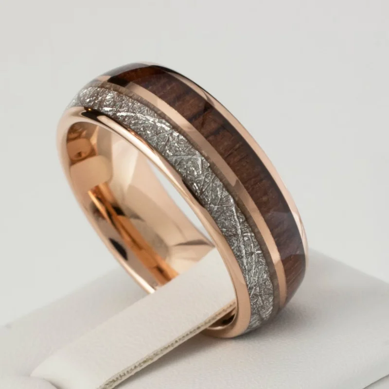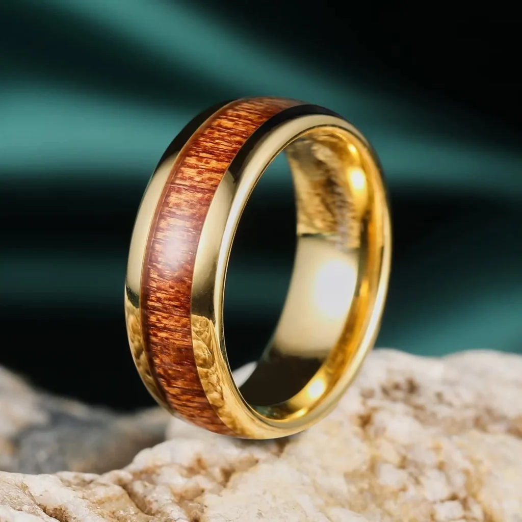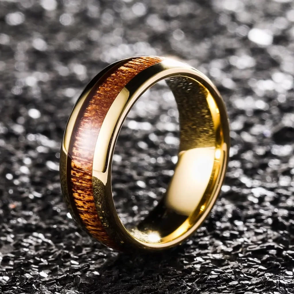 Aurum Arbor – Bague homme or inoxydable incrustée bois 8mm