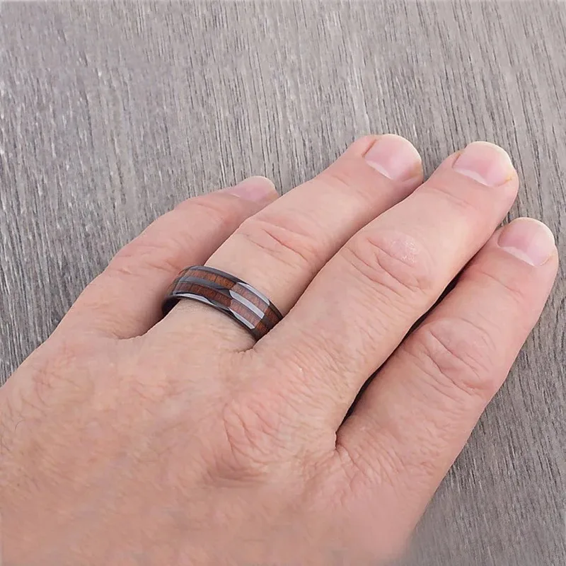 Eryndor – Bague homme en acier inoxydable et bois naturel d’acajou 8mm