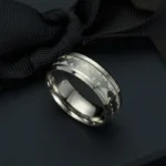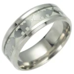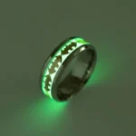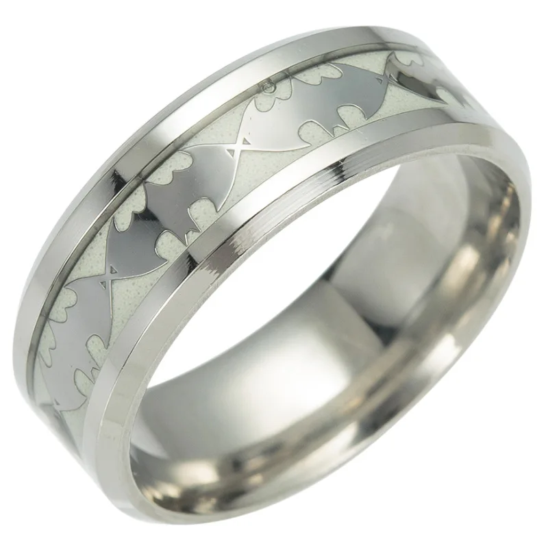 Fabriquée en titane et acier inoxydable, elle allie robustesse et confort. Sa largeur de 8 mm lui confère une présence affirmée sans compromettre la facilité de port au quotidien. Mais son atout distinctif réside dans son effet fluorescent : la bague brille dans l’obscurité, révélant une aura mystérieuse digne du Chevalier Noir.