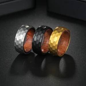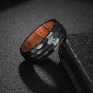 Astra Bois – Bague homme acier martelé et bois intérieur