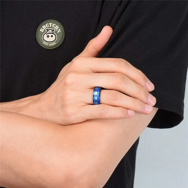 La bague Astreus incarne puissance, élégance et symbolique. Forgée en carbure de tungstène, l’un des métaux les plus résistants au monde, elle allie robustesse et éclat intemporel. Sa surface bleu profond attire la lumière et évoque l’infini, tandis que la flèche gravée au centre symbolise la direction, l’ambition et la fidélité inébranlable.