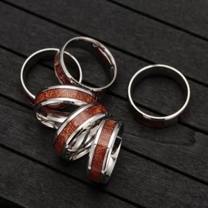 Eryndor – Bague homme en acier inoxydable et bois naturel d’acajou 8mm