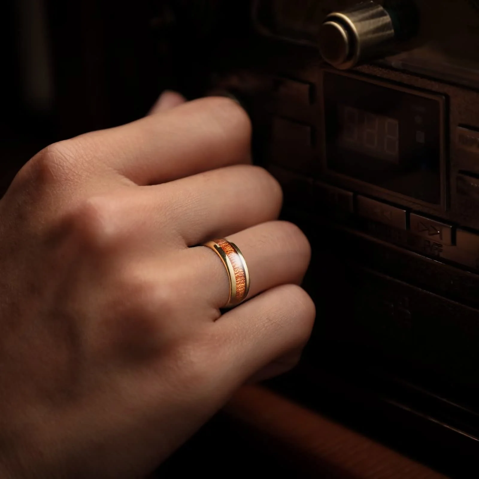 Sa largeur de 8 mm offre une présence affirmée au doigt, tout en garantissant un confort de port exceptionnel au quotidien. Ce mariage subtil entre or et bois fait de l’Aurum Arbor une pièce premium, idéale pour les hommes qui veulent affirmer leur personnalité avec élégance et singularité.