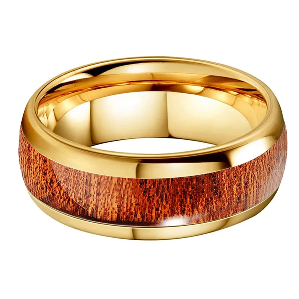 Aurum Arbor – Bague homme or inoxydable incrustée bois 8mm