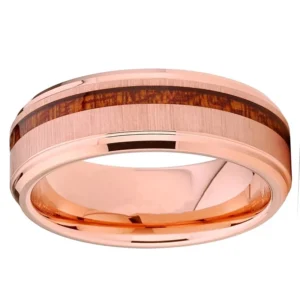 Rosarum – Bague homme or rose et bois naturel 8mm