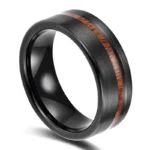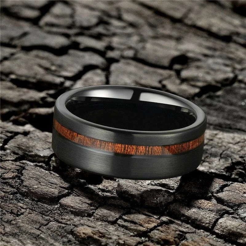 Nox Arbor – Bague homme noire rainurée bois 8mm
