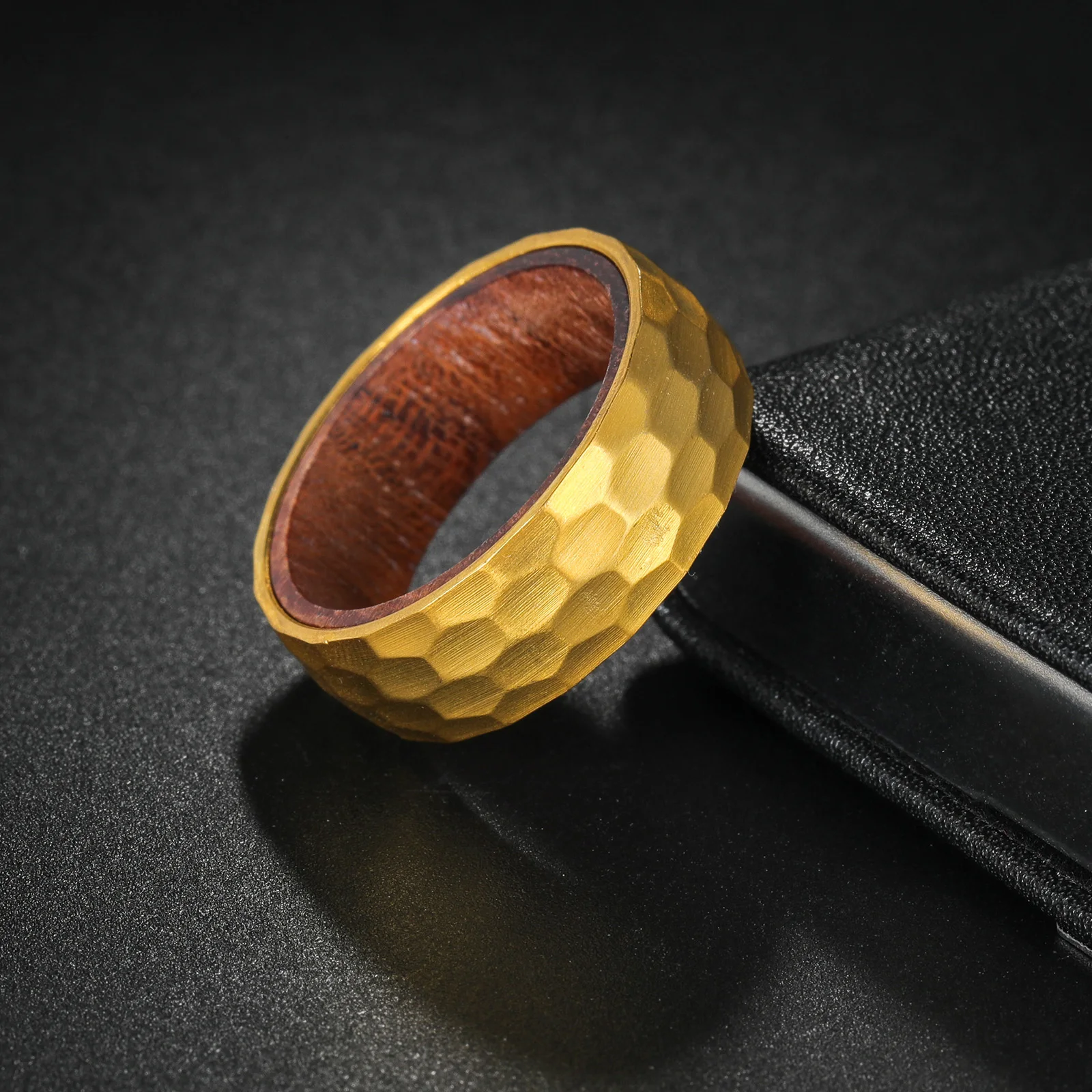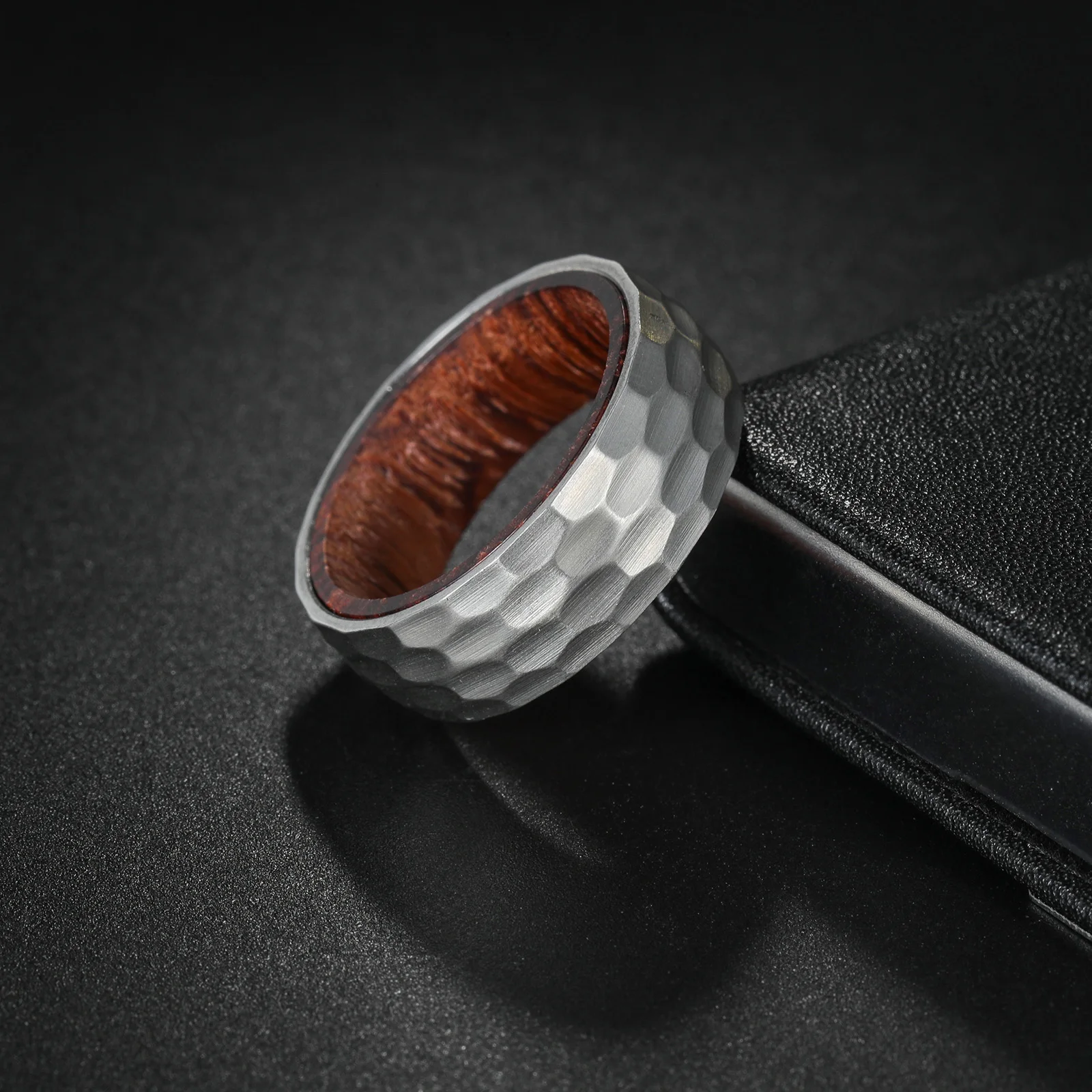 Astra Bois – Bague homme acier martelé et bois intérieur