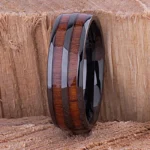Koa Lux – Bague homme titane noir incrustée bois Koa