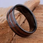 Sa largeur de 8 mm confère à ce bijou une présence forte et masculine, tout en restant agréable à porter au quotidien. Le contraste raffiné entre le noir profond du titane et la teinte riche du bois met en valeur un design sobre mais puissant, idéal pour ceux qui souhaitent exprimer leur caractère avec élégance.