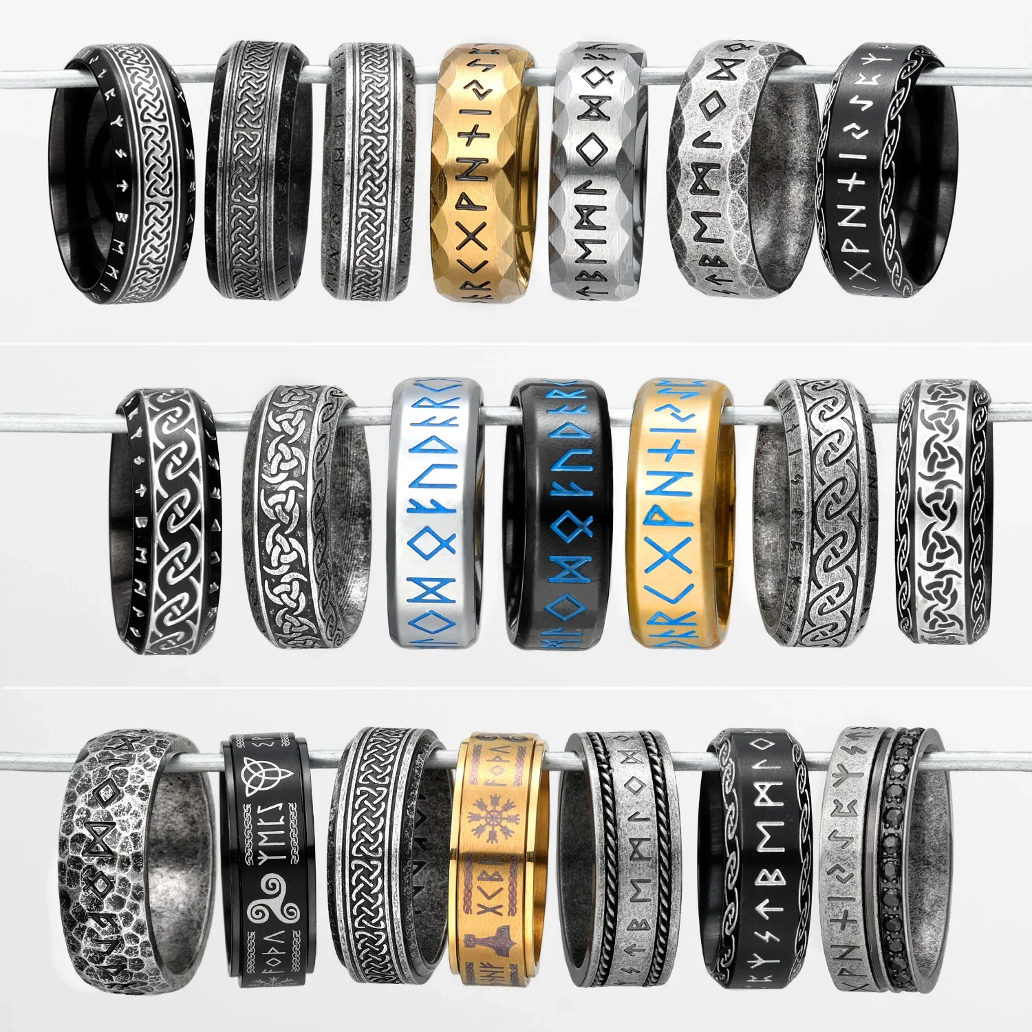Runic Legacy – Collection de bagues Viking nordiques multi-styles en acier inoxydable 316L