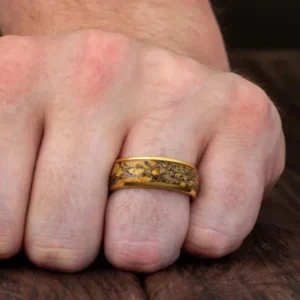 Solaris Arbor – Bague homme or inoxydable et bois texturé 8mm